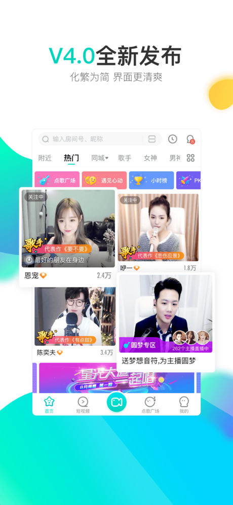 繁星直播间苹果版优质内容越来越多了,还加入了听歌识曲,繁星直播间再也不用担心听到的歌曲不知道歌词了。繁星直播间手机版还有大咖艺人的直播互动类访谈节目——星乐坊,丰富多彩的直播互动访谈模式,繁星直播间让百万粉丝通过互联网,近距离接触访谈现场。