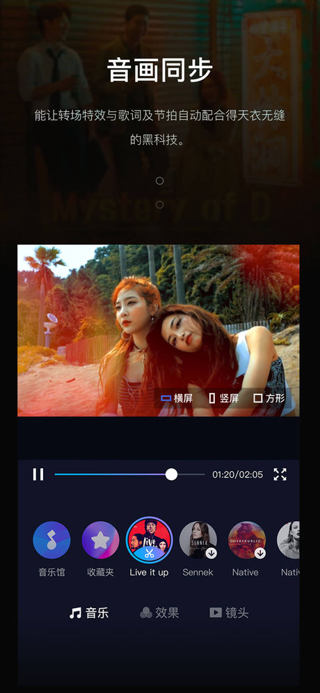 - 音画同步黑科技:转场特效与歌词及节拍配合得天衣无缝