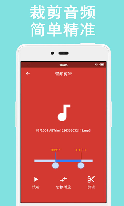 1、 音频剪切:本地音乐库,自定义音频裁剪范围,剪出你要的特别精彩;