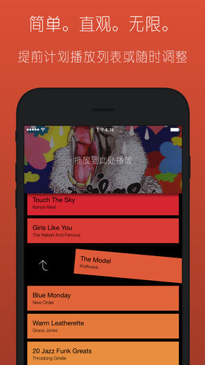 向左或向右轻移将歌曲拖到新位置