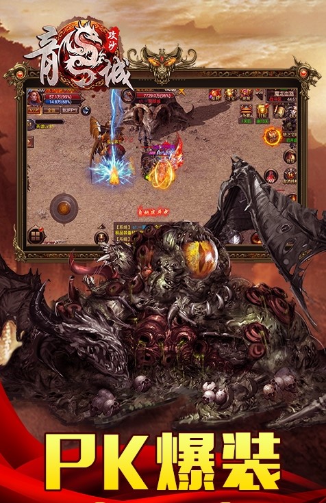无兄弟,不传奇!《龙城攻沙》复刻经典玩法,还原自由PK爆装,再现屠龙经典道具,更有封魔榜等创新玩法,带你重温热血世界!,恢弘壮观的游戏画面,再现了沙城风貌,经典的游戏职业还原,丰富的游戏玩法,华丽时装,极品神器轻松打造。