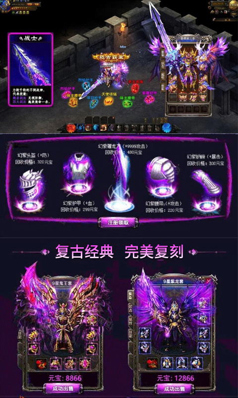 复古屠龙手游这款复古效果满满的经典传奇手游,以经典传奇1.76版本打造,重温经典沙城PK竞技体验,各种一刀满级,三秒直升999级,各种神装免费爆,感受最最经典的复古屠龙手游,在这里一起体验热血传奇战斗吧!