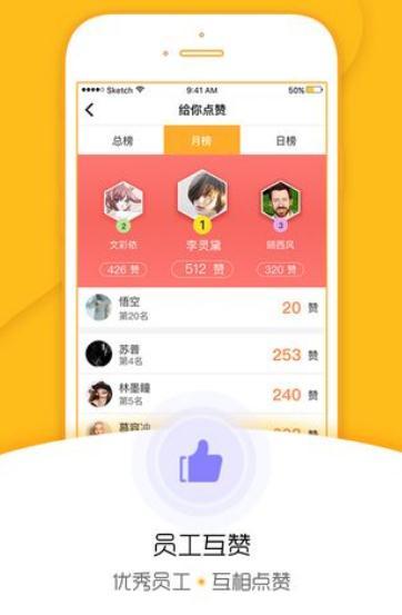 3、朋友多多,随时给你的同事点赞,互动简单。