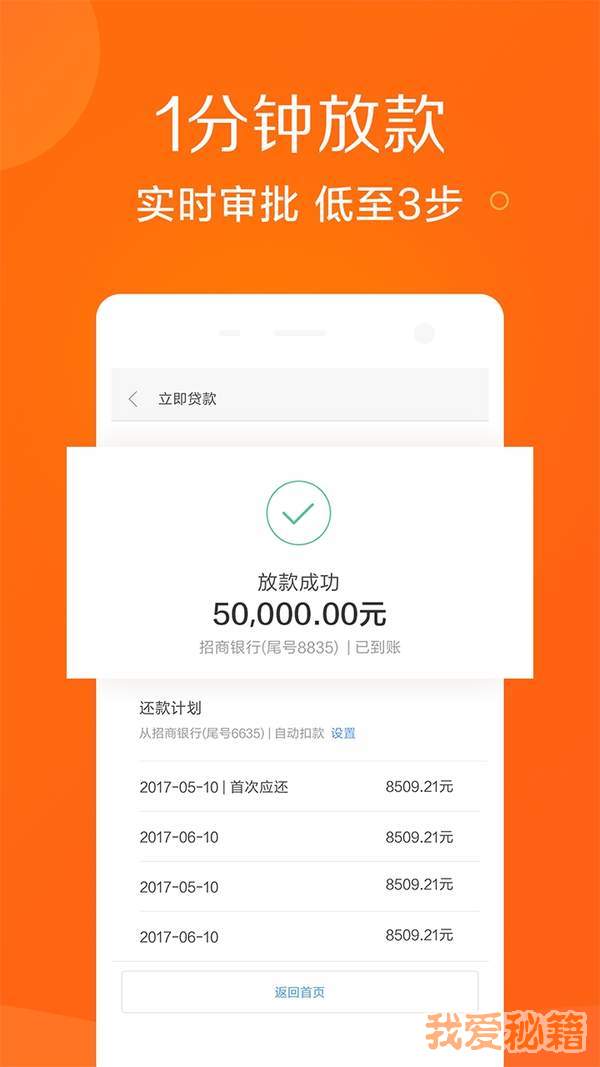 【便捷】有借有还,再借不难。一次申请成功,终生自动放款!