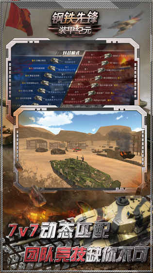 《钢铁先锋》是一款以现代装甲陆战为背景的真人实时射击手游,战斗中通过不同的装甲车及坦克车进行对战。玩家可以通过获取游戏获取相关配件填充自己的坦克,让你的战车在战斗中更加得心应手。搭配属于自己的完美战车,称霸整个战场。【次世代渲染建模,现代坦克完美复刻】【7V7动态匹配,团队竞技缺你不可】【配件自行搭配,DIY你的个性输出】【真实坦克操作,就等你来战!】