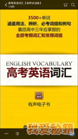 全新的移动端【高考英语词汇】App,在完整还原纸书内容基础上,优化了纸书编排、增加了有声点读功能,可点读、可循环,全面利用学生的碎片时间,放学路上也能学,掌握纯正地道的英语发音,不做“哑巴外语”,营造真实的外语学习氛围。
