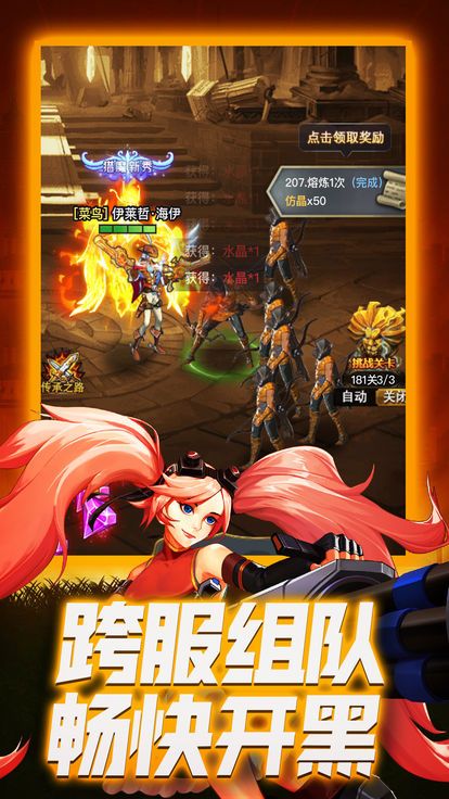 并且也支持自动挂机功能,可以帮你自动打怪哦,轻松升级,获得奖励。
