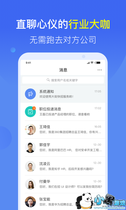 2、全新招聘形式,直聊心仪的行业大咖,代替线下的意向沟通。