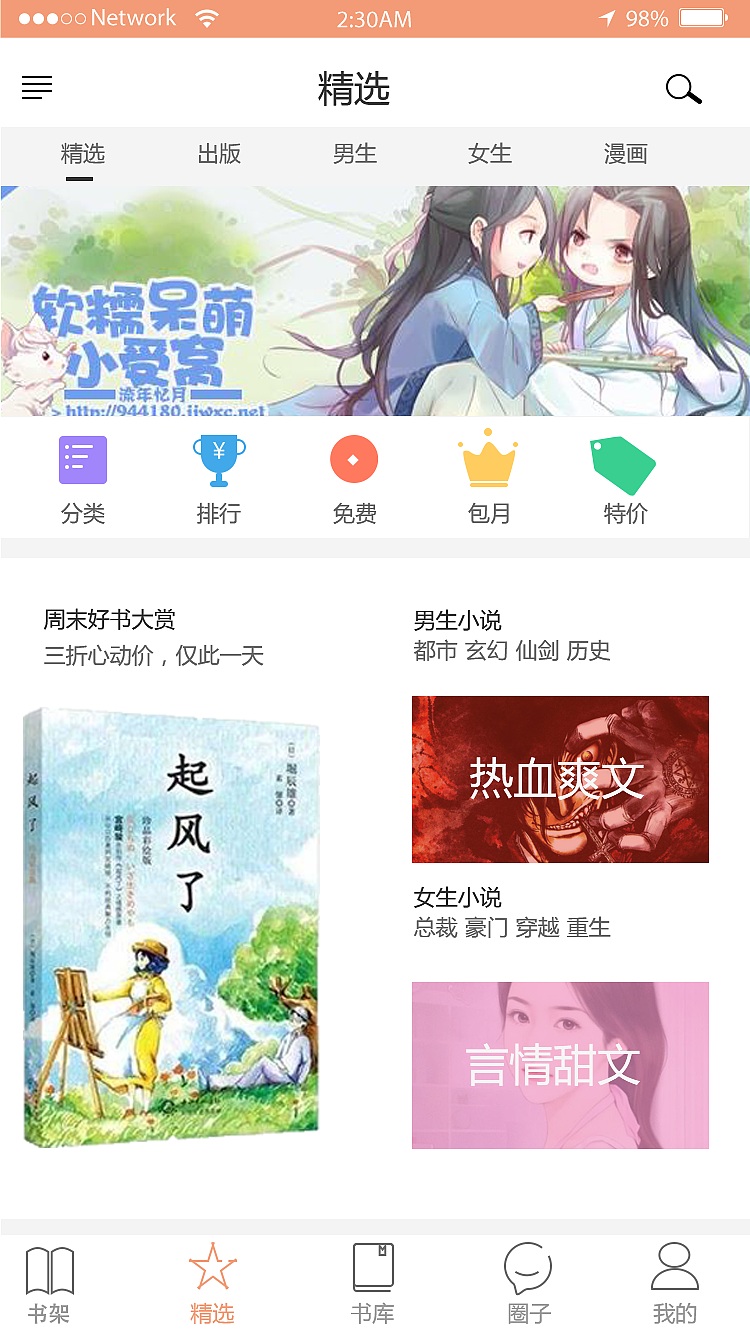 【精选书籍】女频、男频、出版、免费小说任意看;