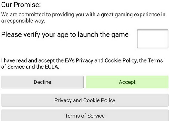 进入游戏时如遇到上述截图无法进入游戏时,请在方框内输入18,然后点击Accept即可进入游戏。(此处是游戏验证玩家年龄所设置的防沉迷)