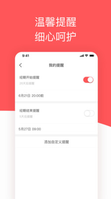 经期流量痛经情况、情绪波动和习惯,让你可以在手机上体验更贴心。