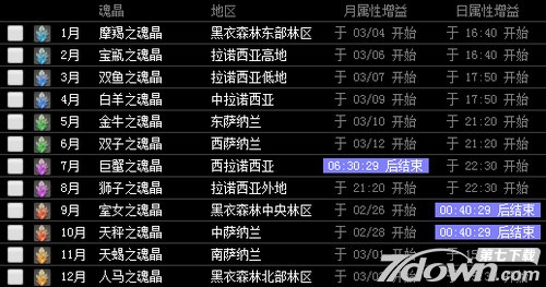 不过,由于游戏内时间是可以随时查看到的,所以不管是上面哪一种说法,只要你根据游戏内的时钟,在A属性的月份,A属性的日期,A属性的刻,去打A属性的魂晶就会比较好打。