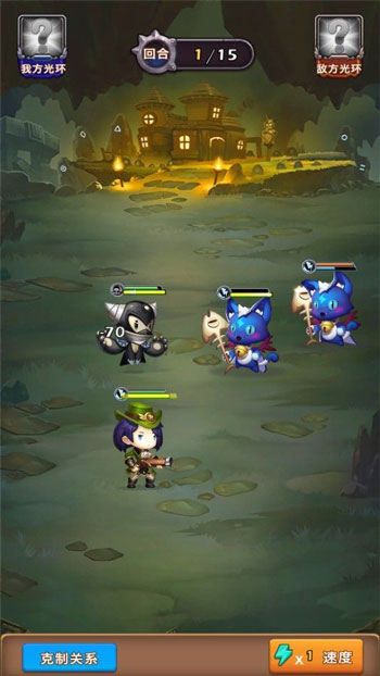 2、丰富独特的羁绊关系可以组合不同的技能厮杀到底,轻松趣味的离线挂机也能获取不同的资源;