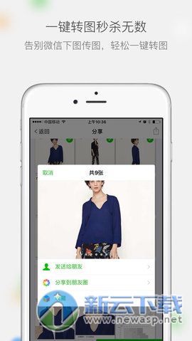 一键转图:好友、员工或代理只要关注你的相册,可随时查看上新及推广图文,并一键转发至朋友圈;同样的,你也可以关注他人的微商相册,并转发他优质的图文内容;