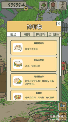 5、【购买便当】用收割获得的 18 枚三叶草去商店买便当时,点击“野葡萄烤饼”,此时出现红框圈定,再点击一次就会出现购买确认窗口了。