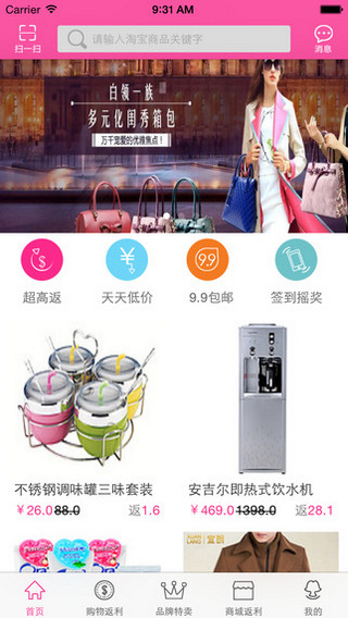 服装.家居等8大分类商品,每日精选超值商品逛不完,高品质高返利,好生活没有那么贵。