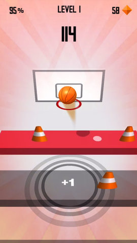 在屏幕上左右滑动控制篮球跳跃躲避障碍并最后投篮。