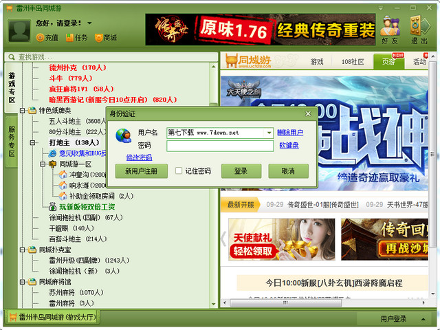 雷州同城游戏大厅是有同城游专为雷州用户打造的具有雷州特色风格的棋牌游戏。游戏包含了雷州升级,徐闻拖拉机(四副)等各种特色游戏。小黑游戏小编给大家带来了最新版的下载,欢迎下载。