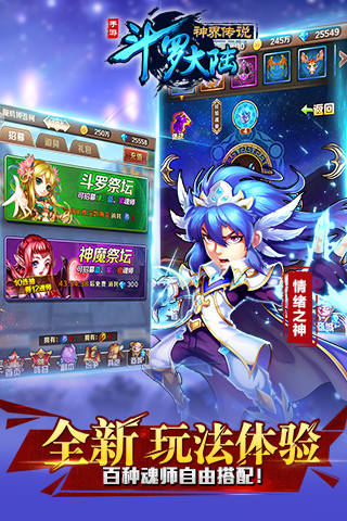 《斗罗大陆神界传说》追求富有打击感的战斗体验,突破传统卡牌僵化的战斗方式,引入立体卡牌、魂师合击,各种华丽技能等你来战!在游戏中,你将体验到全新的玩法设计:打破职业终身制,带给玩家高度自由的游戏体验,合体技能、绚丽时装、百名魂师、百种魂骨随心搭配,享受不同魂师组合带来的战斗快感!打破传统卡牌平面表现形式,梦幻般的动态光影、生动的场景特效,华丽的技能效果带给你超震撼的视觉体验。