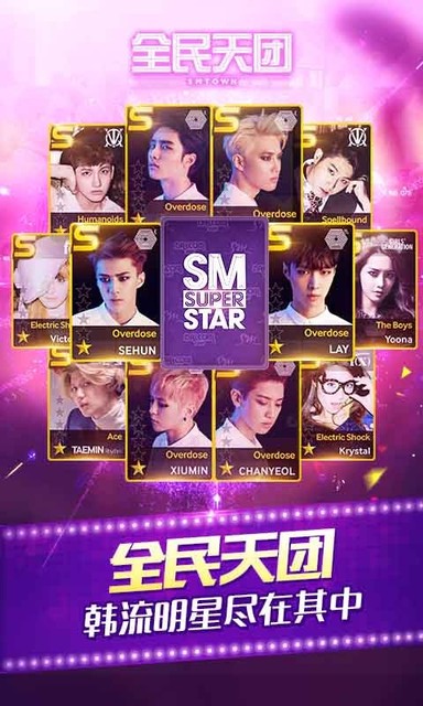 全民天团是小黑游戏为朋友们推荐的一款有趣实用的app,全民天团是一款万众瞩目的音乐游戏,明星大腕阵容华丽来袭,随心所欲玩转音乐,纯正精美的韩流画风,让粉丝们奉献上一场完美的视听盛宴!全民天团,EXO、F(x)、少女时代、Super Junior、东方神起、SHINee等天团和你一起玩音乐,让你零距离接触你喜爱的明星!融合了精准节奏打击和卡牌收集合成两大元素,一秒也不想停下来,一起感受下来自音乐的无穷魅力。