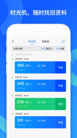 随时找回:通过回收站或时光机,随时找回找回误删的联系人