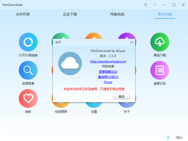PanDownload,百度网盘高速下载器。采用了Aria 2技术,支持离线下载、新番下载、提取下载链接、自定义Aria2配置、自定义分享密码,原理类似油猴脚本+IDM,获取直链后调用Aria2进行下载加速,登陆网盘账号获取自己的网盘资源下载。这款超级快的百度网盘下载工具能真正不限速高速下载,大家公认的目前最强大、最好用、最有效的第三方百度网盘下载客户端。