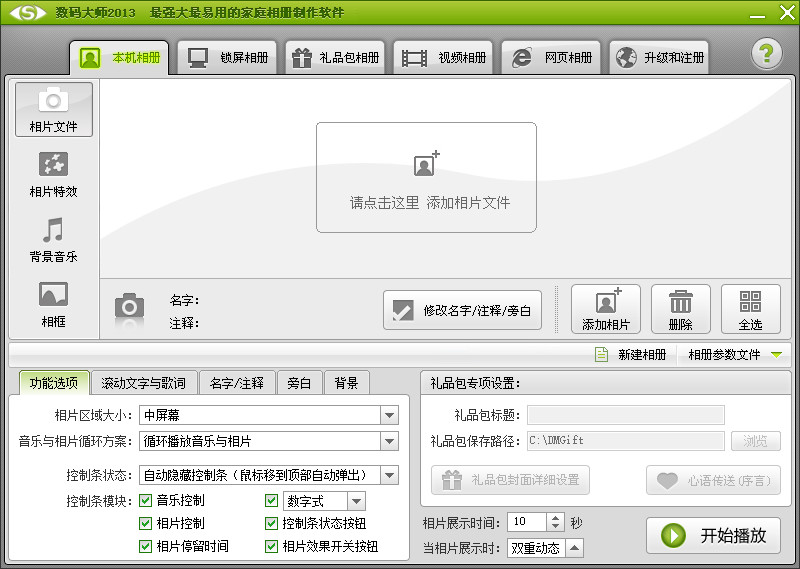 可以在您自制好的本机相册基础上,通过简单的打包设置,即可自动生成可分发的礼品包相册,可以作为自己收藏分类相片之用,您更可以作为礼物方便的分发出去,对方无需安装,即可让亲朋好友和您一起分享动感的数码礼品!