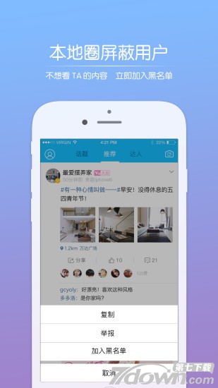 4.【完善】本地圈添加屏蔽功能,讨厌的人通通不看