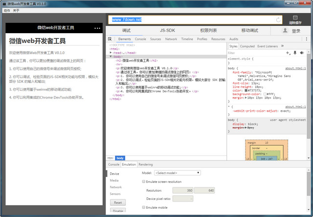 微信WEB开发者工具的推出对于广大自由程序开发人员无疑是一个福音,这个微信WEB开发者工具是一个桌面应用,通过模拟微信客户端的表现,使得开发者可以使用这个工具方便地在PC或者Mac上进行开发和调试工作。有了这个平台开发人员就可以非常方便的测试自己的产品了,有需要的朋友们千万别错过,欢迎大家到小黑游戏体验使用!