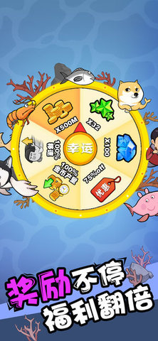 1、各种各样的鱼类等待你合成解锁,不断向着更高品种的海洋生物进化吧;