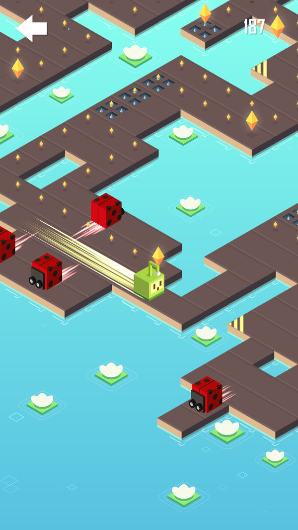 这是款画风清新简单,玩法乐趣横生的闯关逃脱游戏。可爱的方块君是我们的主角,控制它不断向前逃脱,一路上要尽可能收集星星,越多的星星代表着越高的荣誉,也能兑换更多道具,甚至是复活机会哦。游戏最有意思的地方是关卡呈实时动态效果,会触不及防的产生变化,所以一定要时刻集中注意,避免翻车。