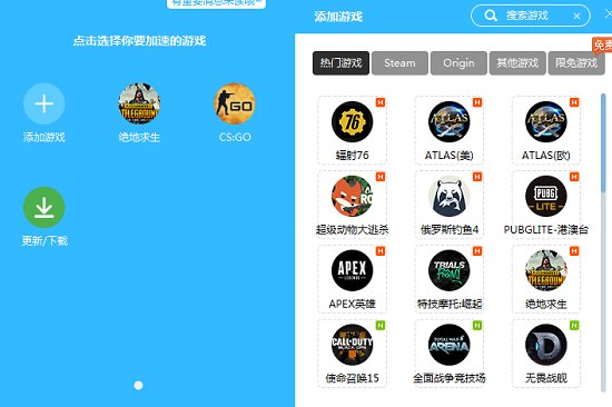 打开软件注册熊猫账号并登录,选择需要加速的游戏。