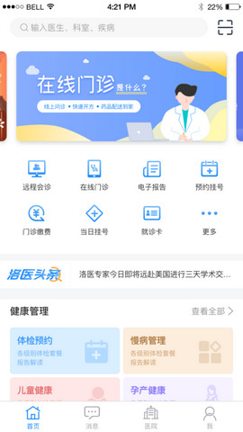 洛医通一款能为用户在这里找到简单的线上的一个就医功能使用,帮助用户能在医生的一些服务上及时的咨询消息,让用户能在一些医疗服务上使用软件,随时的为用户能在这里使用更多的功能上体验到一个简单智能化的服务来就医,便于用户在使用软件上更方便。