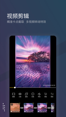 视频拍摄、人像美容,胶片级滤镜特效;支持云音乐、本地音乐