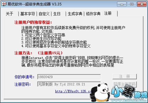 精确选择字符,自定义字符串,定义特殊位,修改已有字典(进行字符串的前插和后插,其中后插@***.com可制成邮件群发列表) ,生日字典制作,电话密码的制作。拥有了这些功能,可以使你忘记的密码在最短时间内恢复。