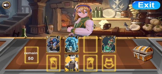 3、拥有几种种类的卡,供你去挑选应用,防御力,武器装备,法术,医治,赏金等;