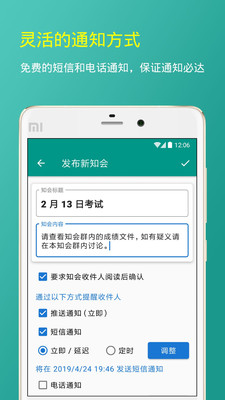 对于老师:道业惑可以使您的工作和生活分开。强大的“知会”功能,轻松发布通知,可以使用免费短信和电话提醒接收者,并可以收集家长和学生已读状态和已确认状态;3 天内消息支持撤回。普通老师也可以方便加入任意班级参与沟通,沟通不再是负担