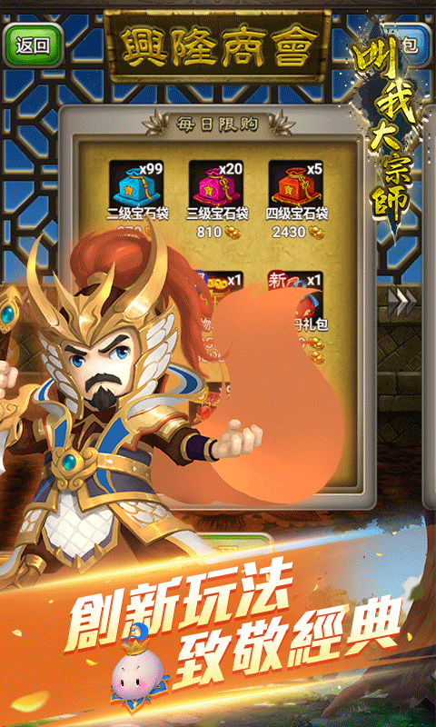叫我大宗师手游安卓版是一款以经典的国风动漫为核心玩法的策略英雄回合制战斗手游,超多强悍的战斗职业等你来选择,每一款职业都拥有不同的玩法和手段,并且上百种强力的武侠英雄等你来招募,在这里组建你的最强战斗小分队来一场激烈的热血角逐,顶级的乱斗为你开启。