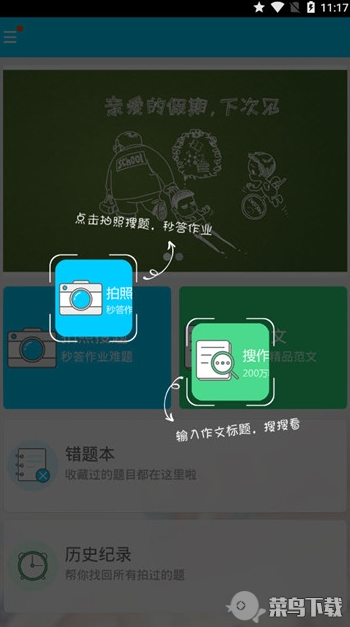 用户在上面可以手机拍照搜索题目的答案做参考。