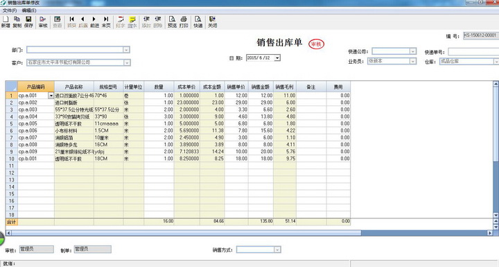 单据部分:采购入库单、领料单、完工入库单、销售出库单、盘点单、调拨单、其它入库单、其它出库单共计八个单据,可以对物料从采购、领料、加工、销售等全过程进行管理与控制。