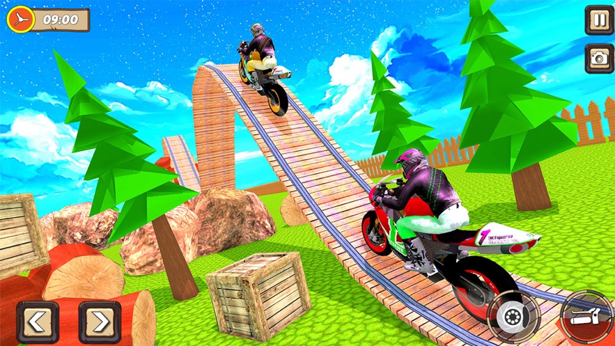 3.把你的摩托车赛车手以最快的速度,完成比赛的进度,同时不要忘了通过各种特技缩短时间。