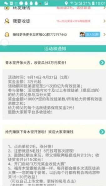 2、收徒会让你的收益暴涨,阅读的文章越多奖励阅读,又能看有趣的新闻又能赚钱,一举两得。