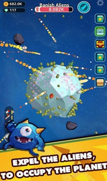 驱逐外星人是一款十分优秀好玩的休闲放置类塔防手机游戏,这款游戏的画面十分不错,操作也很简单,游戏采用卡通像素的画风。玩家需要在地球上放置各种各样的武器,来抵挡外星人的攻击不断的升级武器,解锁更多更强大的武器,迎接更大的挑战。喜欢的玩家快来下载吧!!!