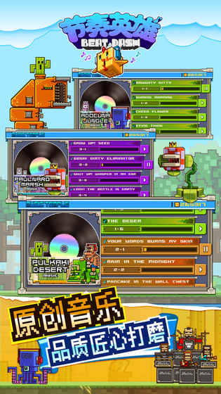 英雄节奏是一款跑酷题材的动作类手机游戏,采用像素风格打造奇特的人物造型,游戏中玩家操控角色进行关卡挑战,每一关都具备潜在的挑战性,指尖点击躲避障碍物进行冒险玩家时刻不要大意,用最短的时间完成关卡挑战解锁更多的角色等你来使用,体验指尖乐趣喜欢的小伙伴快来下载吧。
