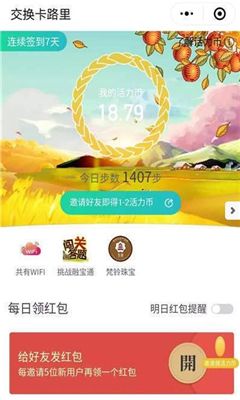 交换卡路里APP是一款通过走路就能赚钱的手机平台,在这里通过平台打卡签到记录每天所走的步数,计算每日消耗的卡路里就能赚钱,每天登录签到还能领取现金红包,赚钱轻松快速,喜欢赚钱的小伙伴千万不要错过了!