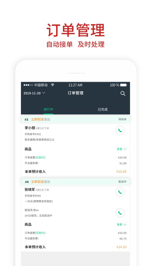 1、通过这款软件商家可以及时对订单进行管理,自动接单及时处理。