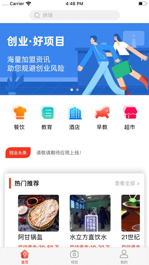 2、热门赚钱的创业项目推荐,各种最新最热的创业头条资讯,让你在创业大军中独占鳌头。