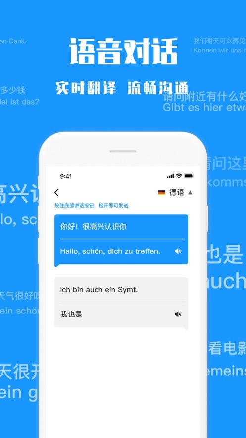 3、语言情景对话,就像是在跟一个外籍友人聊天一般,流畅沟通,随时反复听读翻译的语句。