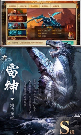神域boss的激战,大量的神兵利器是你梦寐以求的,掉落几率极高;