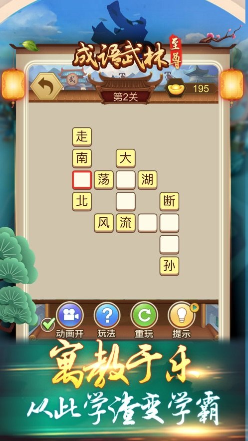 《成语武林至尊》是一款将成语填词接龙游戏与武林题材相结合的休闲益智游戏。玩家在游戏的过程中既可以获得游戏通关的满足感,又能不断的积累和巩固成语知识,提高自己的成语水品。基于用户至上、寓教于乐的基本准则,我们会不断的优化打磨游戏内容,为您提供更优质的产品,您的支持是我们最大的动力,非常感谢每一位成语小侠客!